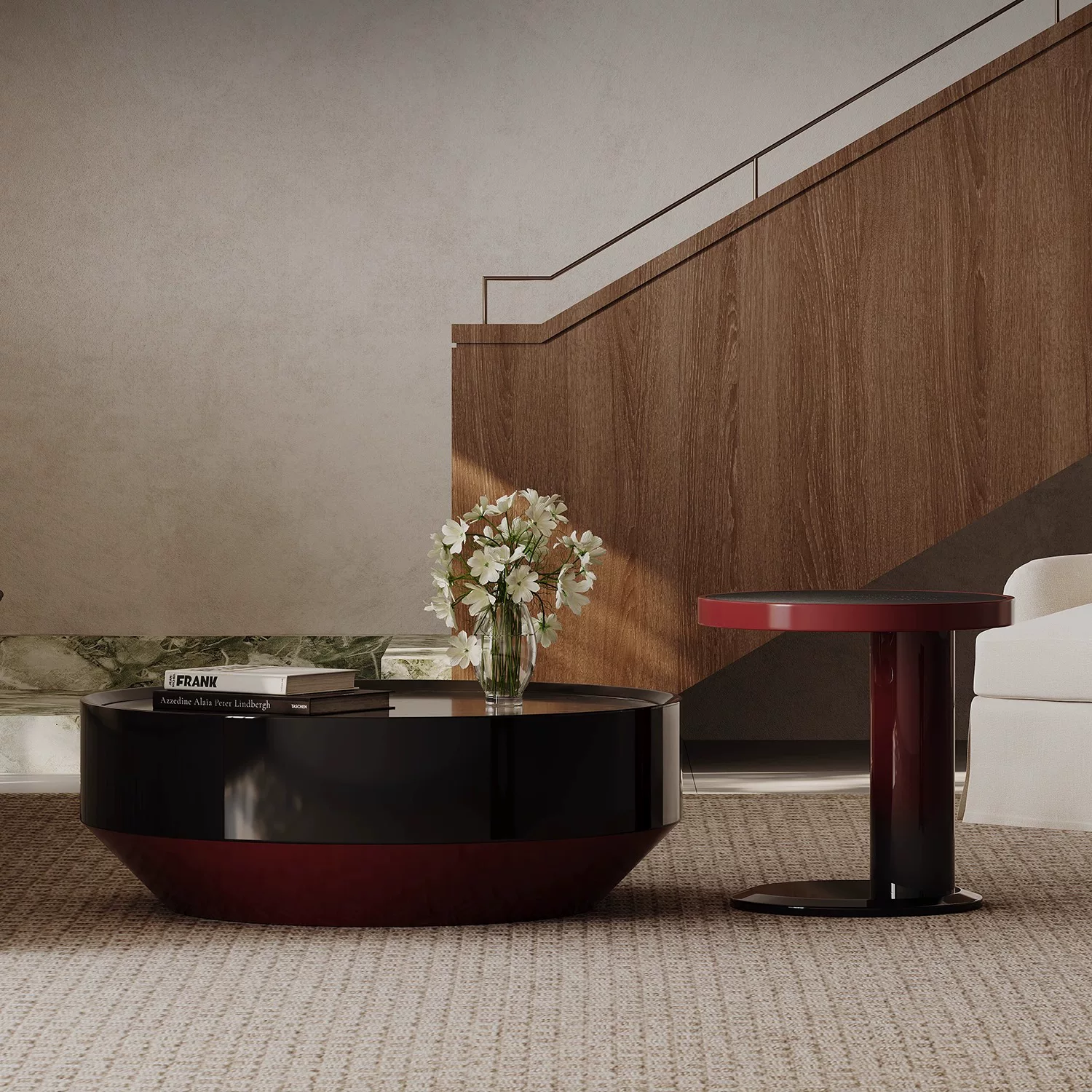 Gaoliang Coffee Table Stone & Wood Combination Round Coffee Table OEM/ODM (KF362)